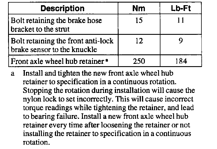 Torque Specifications