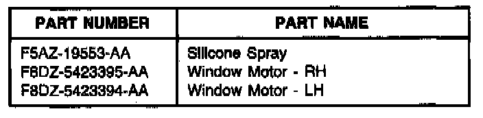8. Lower the window and clean the weatherstrip glass run with a clean cloth that has been saturated with silicone spray (F5AZ-19553-M).
