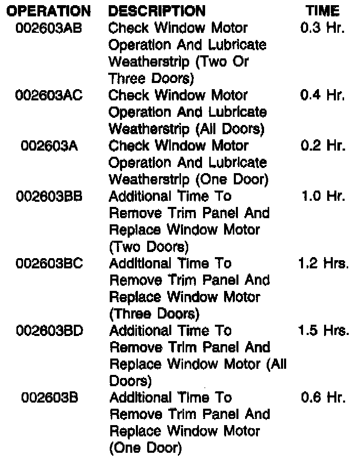 Check window motor operation and lubricate the weatherstrip. Refer to the following Service Procedure for details.