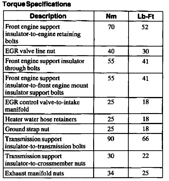 Torque Specifications: