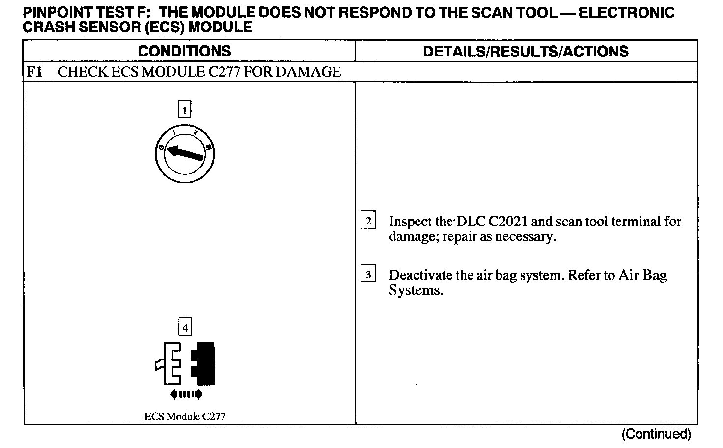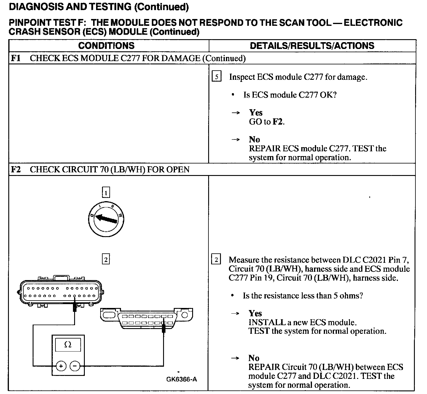 Test F: ECS Module Does Not Respond To The Diagnostic Tool