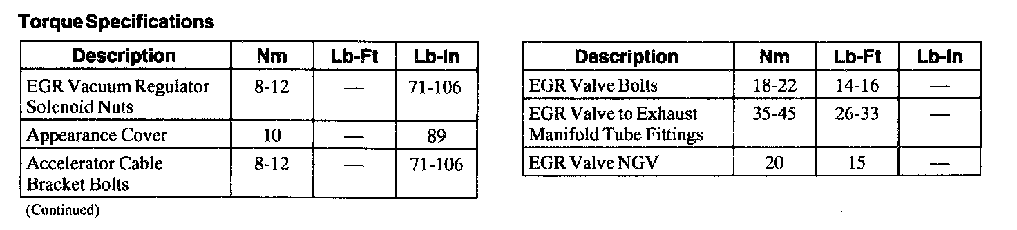 Torque Specifications:
