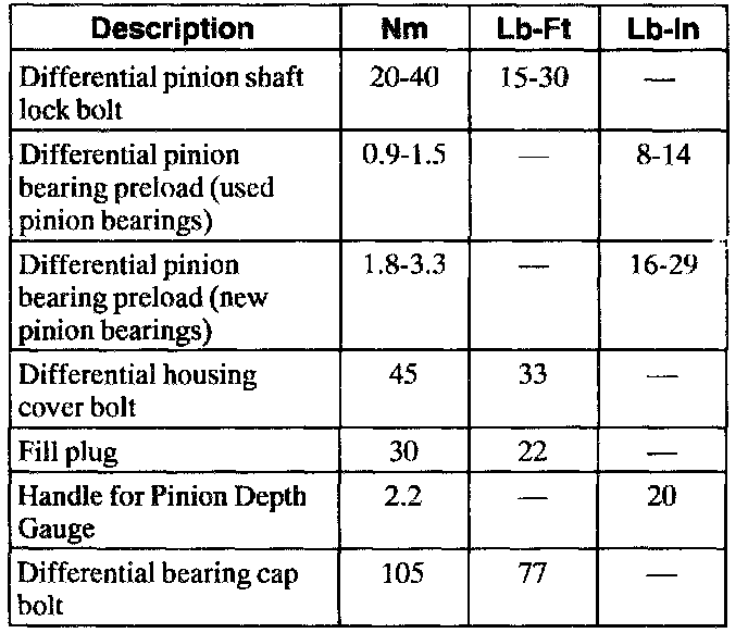 Torque Specifications