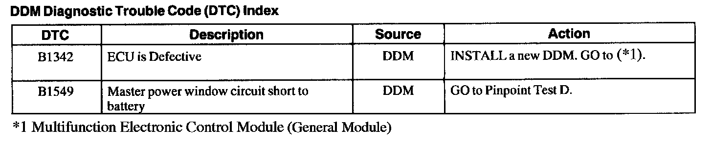 Driver Door Module (DDM) Active Command Index