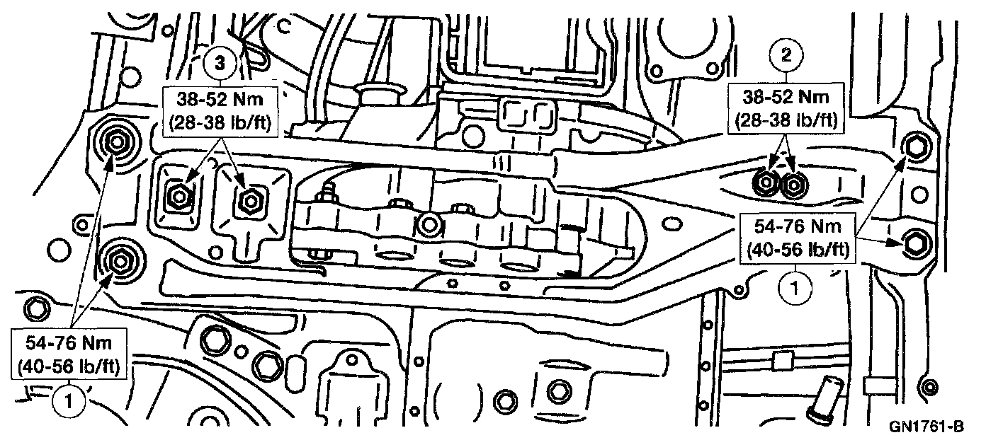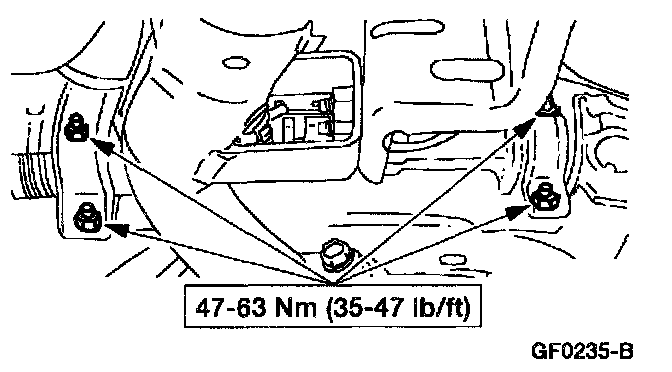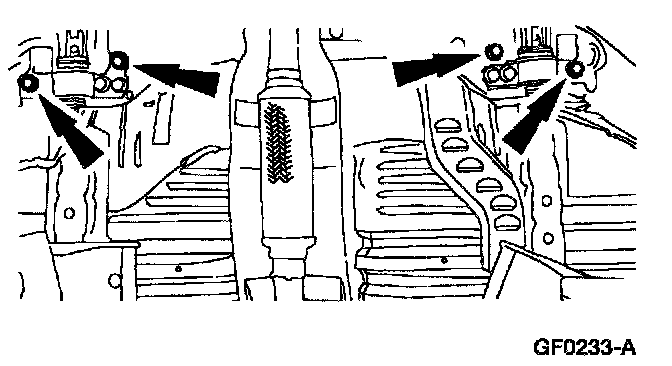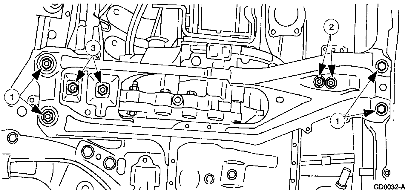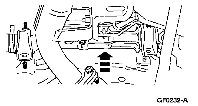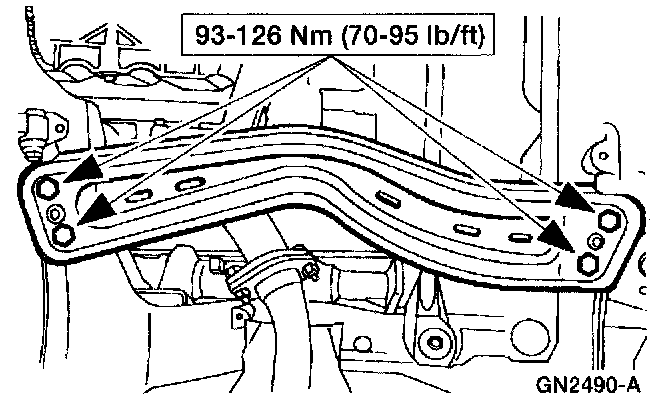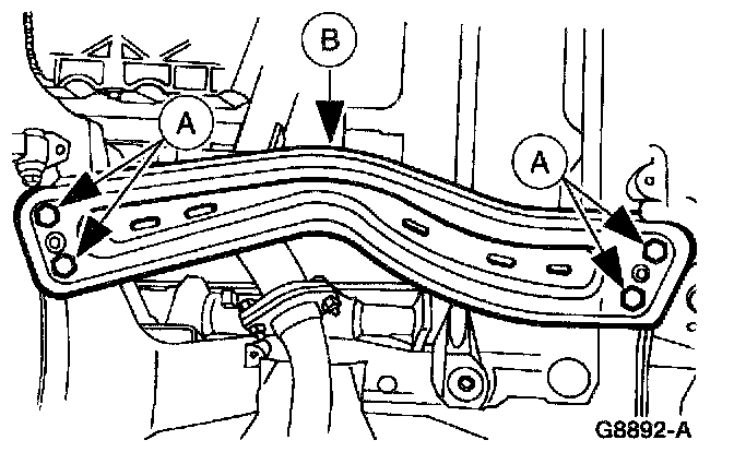 7. NOTE: If equipped, detach the A/C line located on the front of the transmission support crossmember.