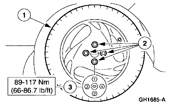 12. NOTE: Tighten the lug nuts in the proper sequence.