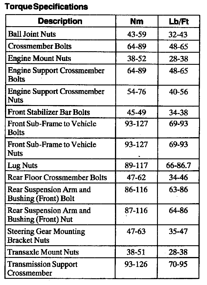 Torque Specifications: