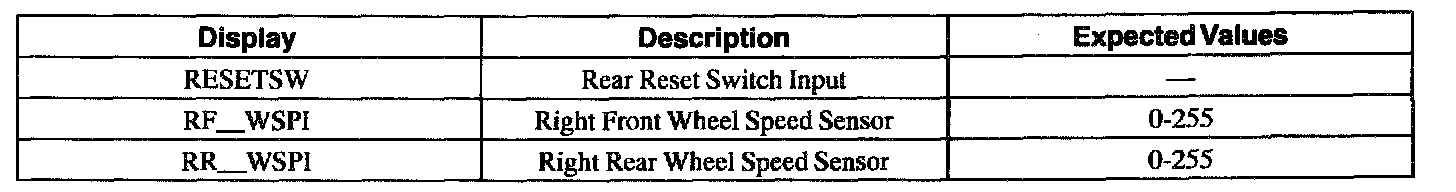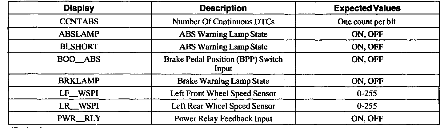 ABS Control Module Parameter Identification (PID) Index