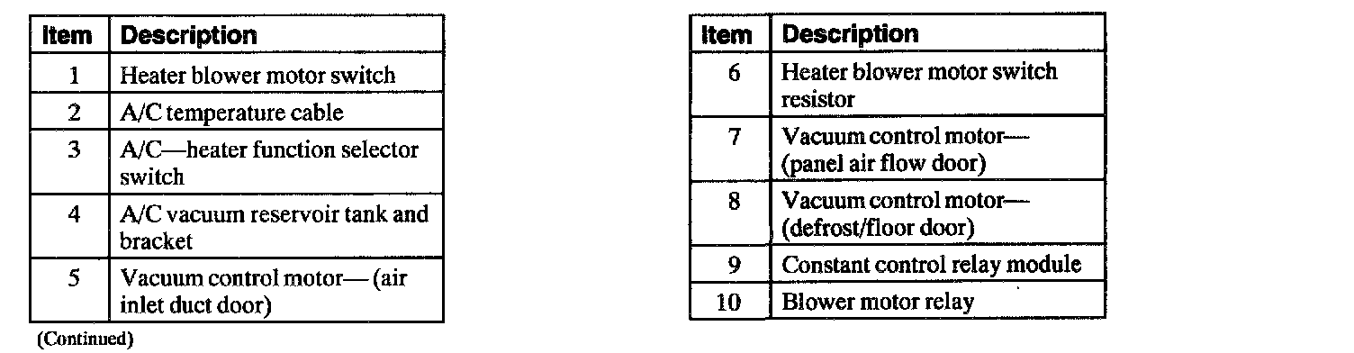 A/C Passenger Compartment Components (Legend) Part 2: