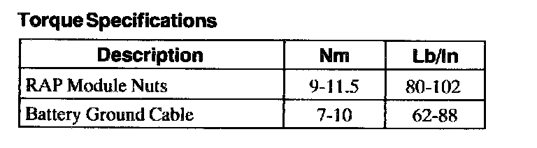 Torque Specifications: