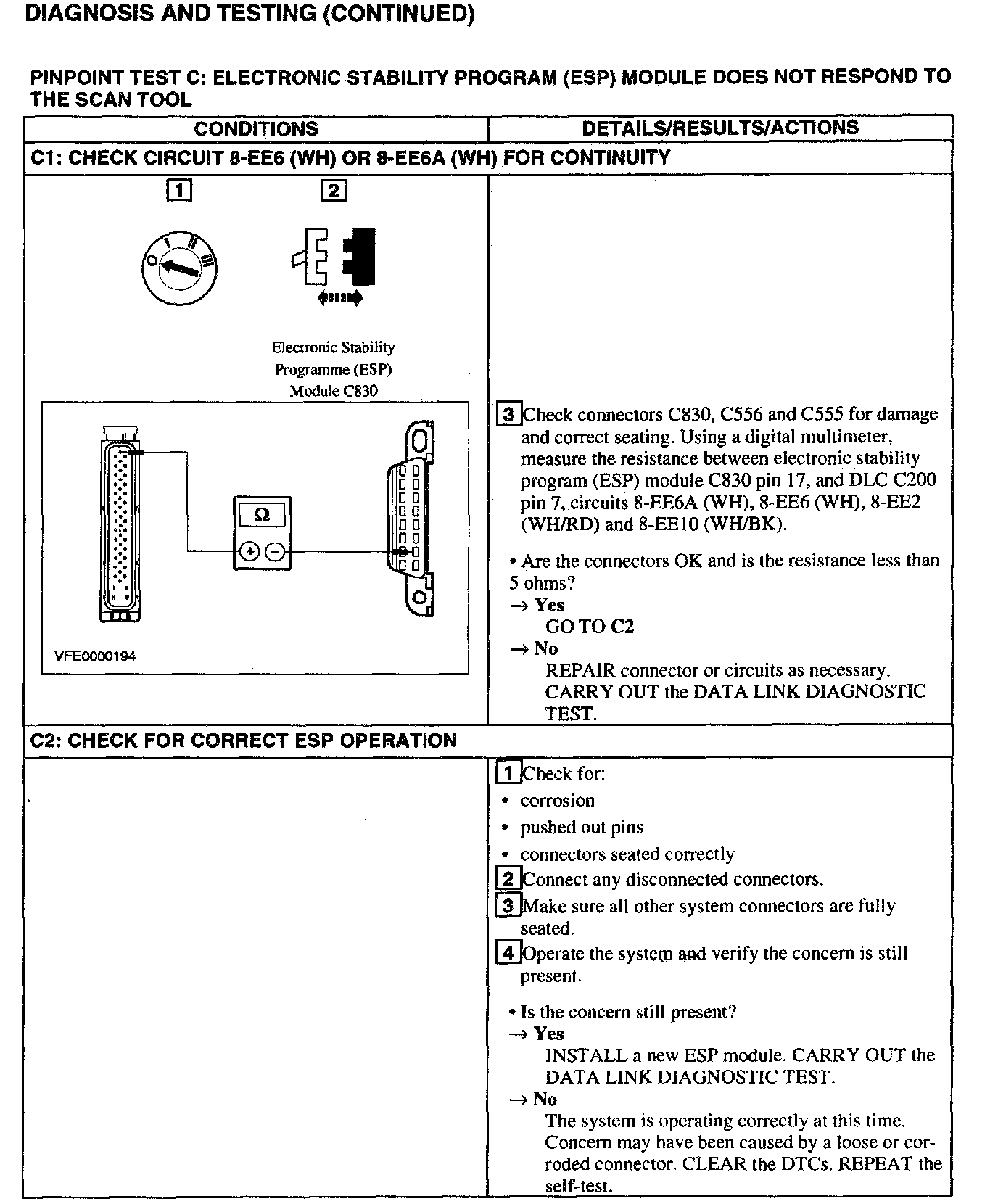 Test C: ESP Module Does Not Respond to the Scan Tool