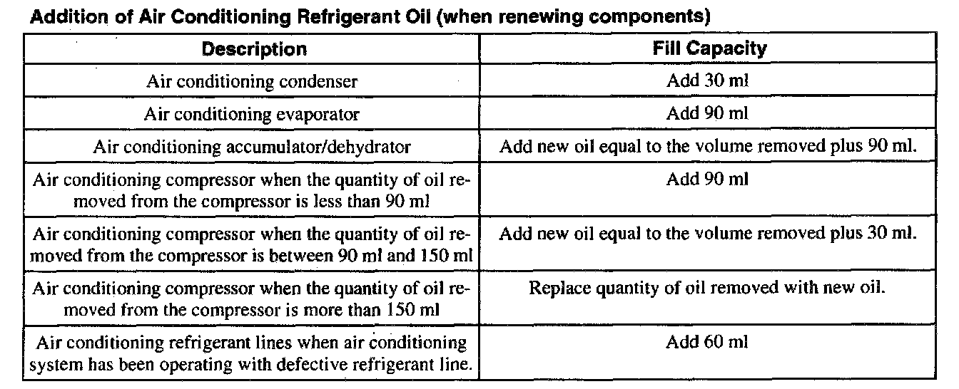 Refrigerant Oil Requirements (when Renewing Components):