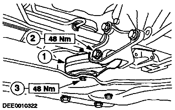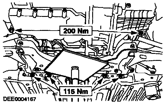 NOTE: The subframe must not move when the bolts are tightened.
