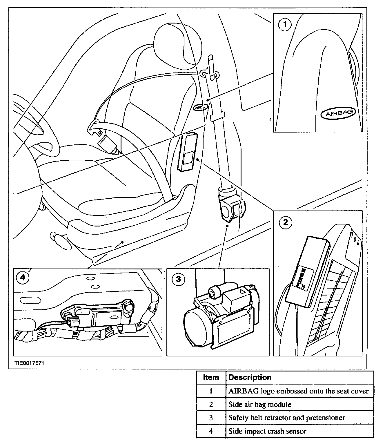 Air Bag and Safety Belt Pretensioner Supplemental Restraint System (SRS):