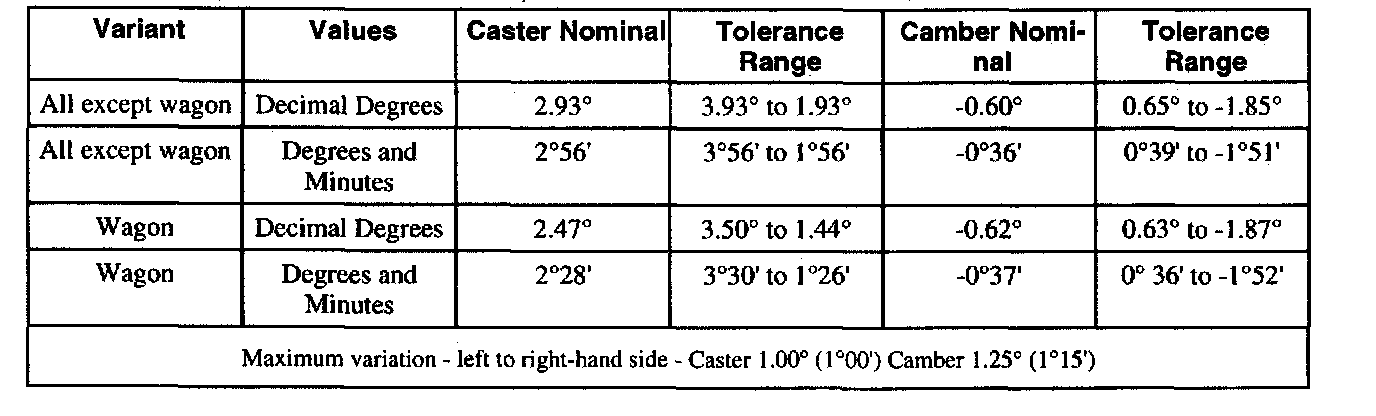 Front Wheel Alignment - Caster and Camber - At Curb Condition