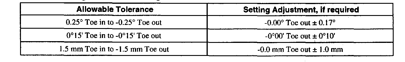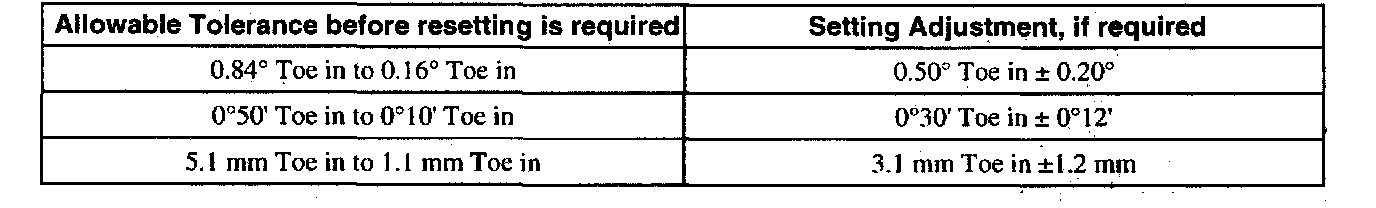 Rear Wheel Alignment - Toe Setting - Wagon - At Curb Condition