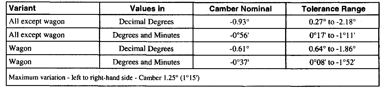 Rear Wheel Alignment - Camber - At Curb Condition