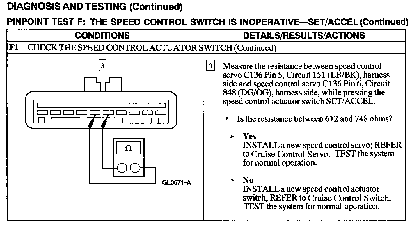 Test F: Speed Control Switch Is Inoperative - Set/Accel