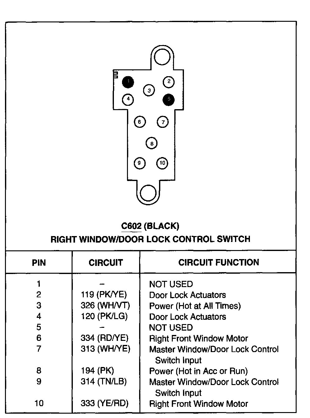 Right Window/Door Lock Control Switch