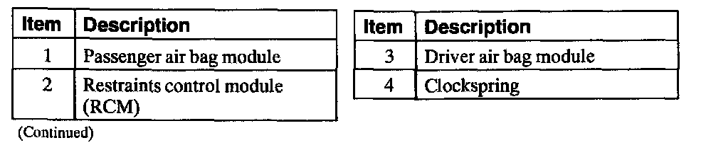Air Bag Supplemental Restraint System (SRS) Components , Part 1 Of 2: