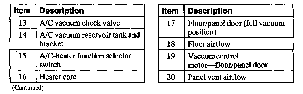 Vacuum Schematic - Manual Climate Control System, (Legend Continued) Part 2: