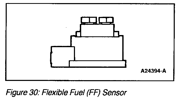 The Flexible Fuel (FF) sensor (Figure 30) is a capacitive device that detects the dielectric constant, conductivity and temperature of the fuel being fed to the engine. From this information, the FF sensor generates a duty cycle frequency that it supplies to the PCM telling it the percentage of ethanol in the fuel.