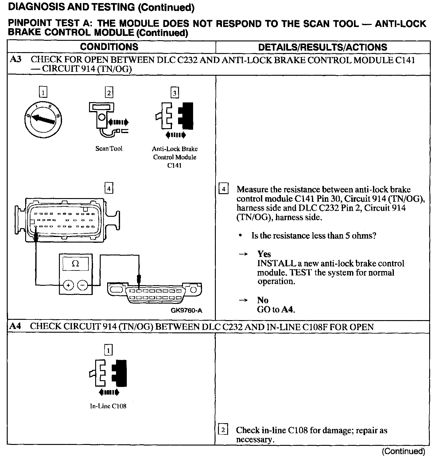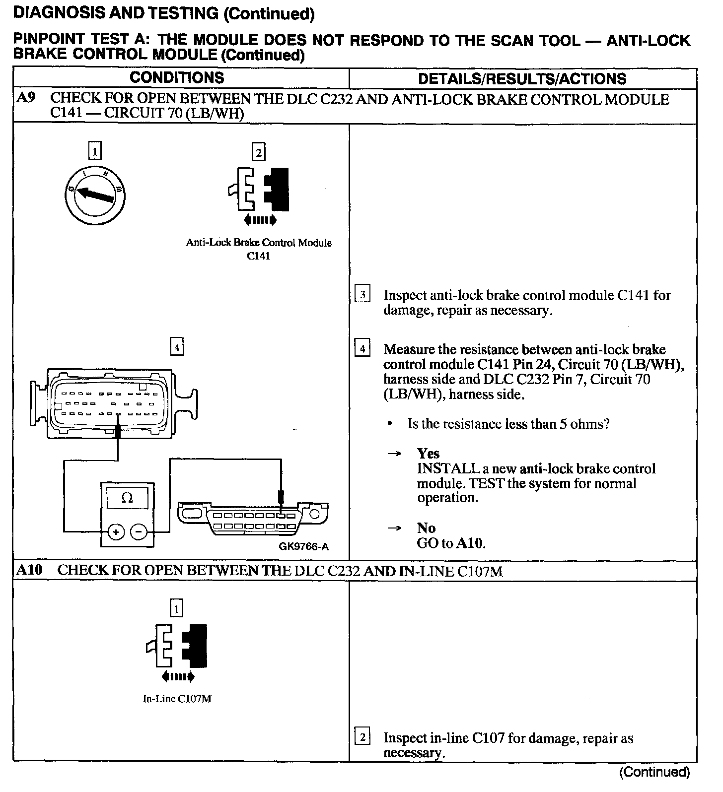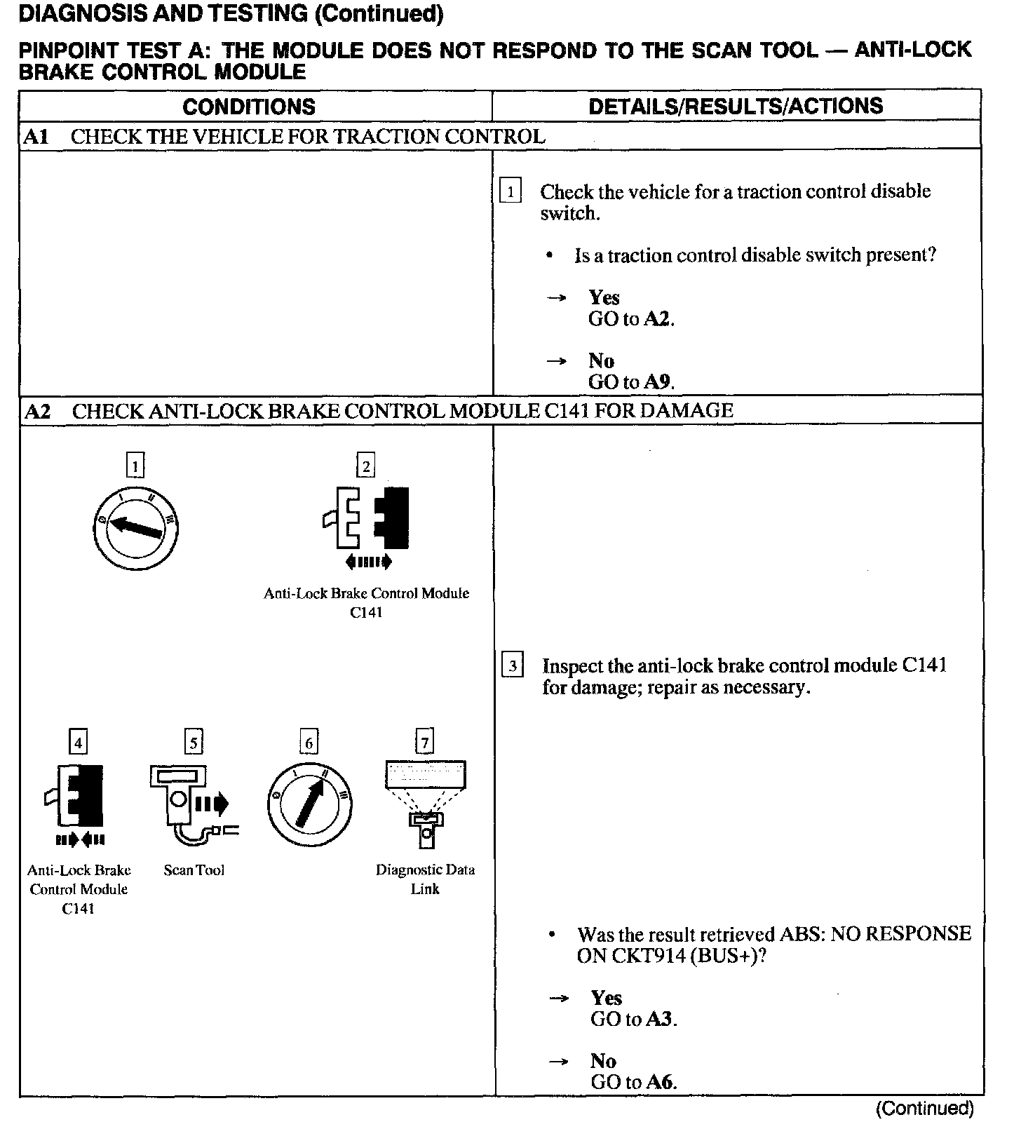 Test A: ABS Control Module Does Not Respond to the Scan Tool