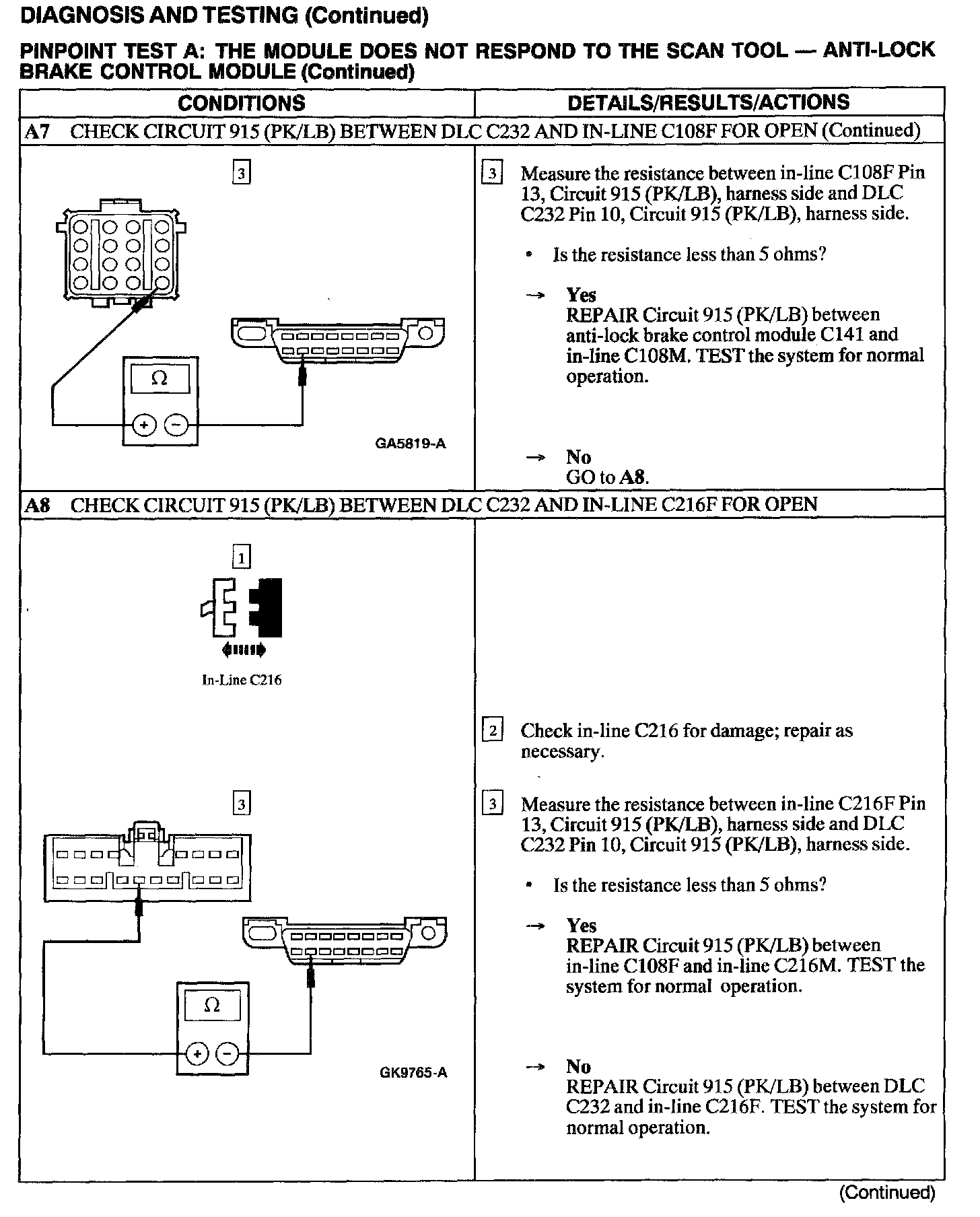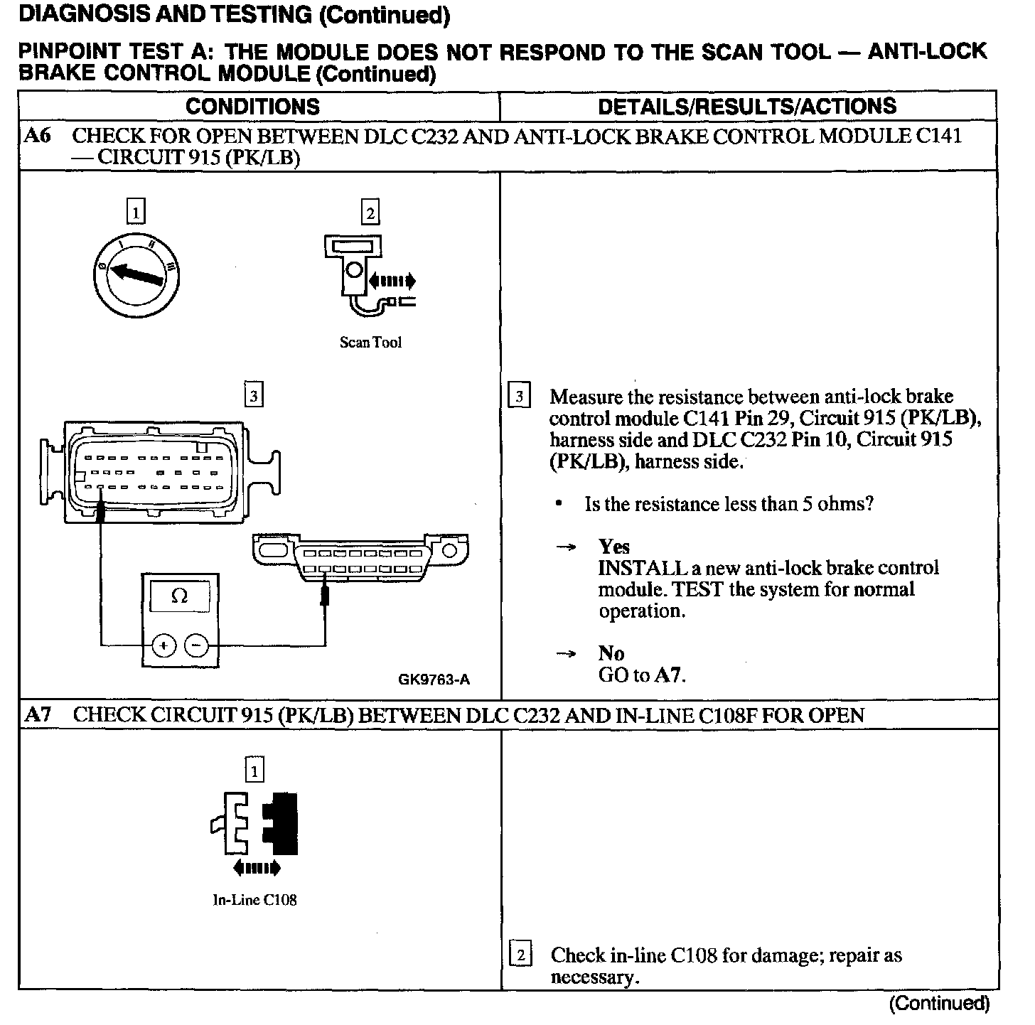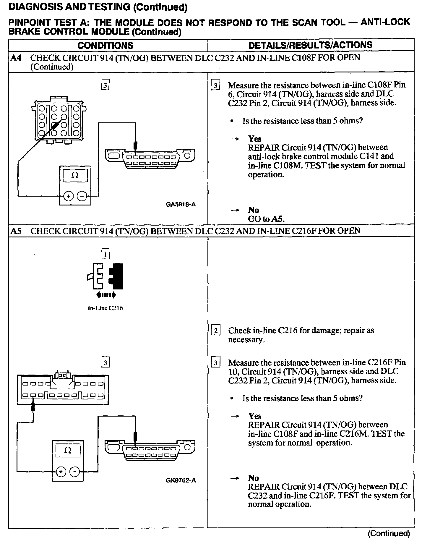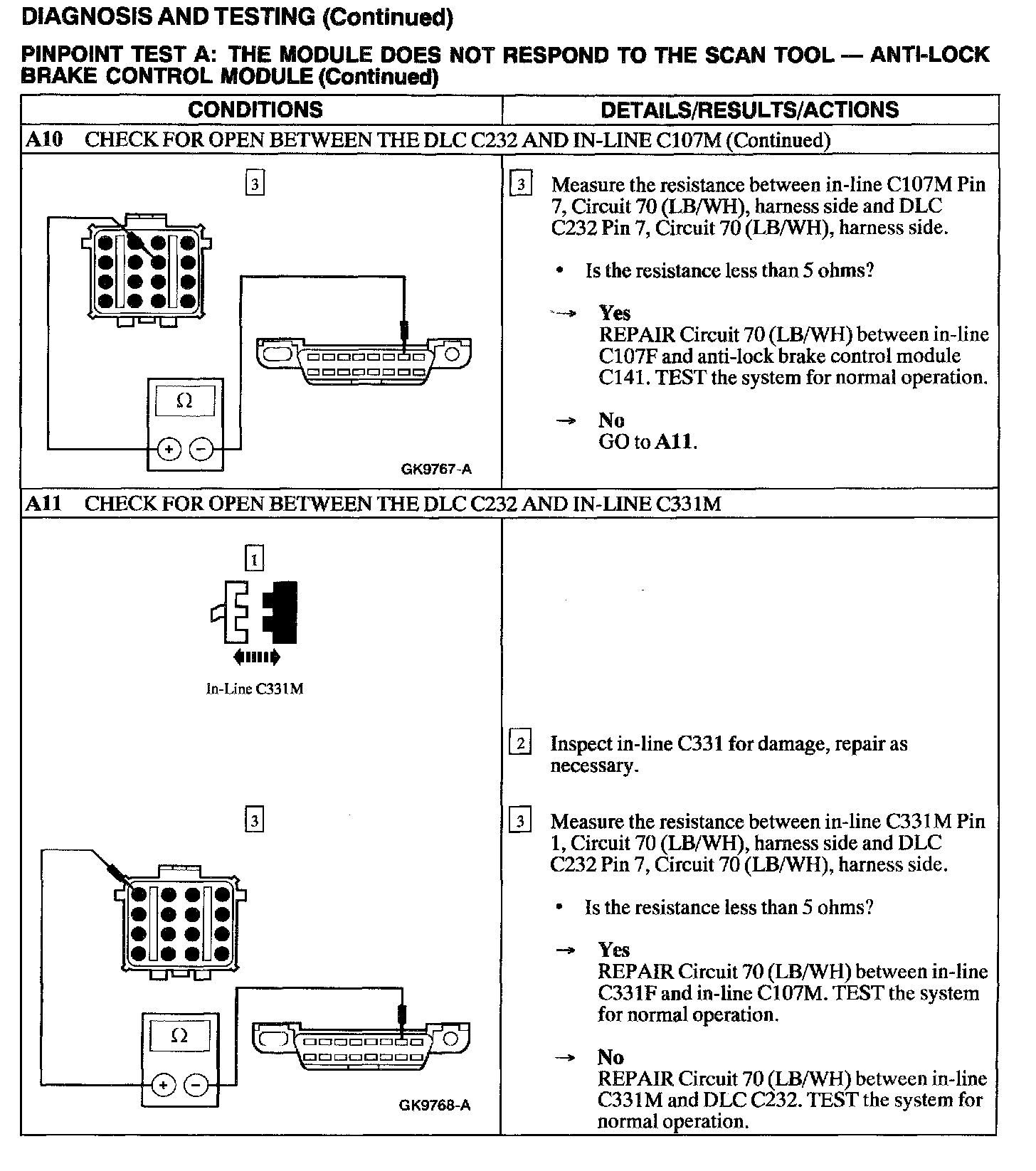 Test A: ABS Control Module Does Not Respond to the Scan Tool