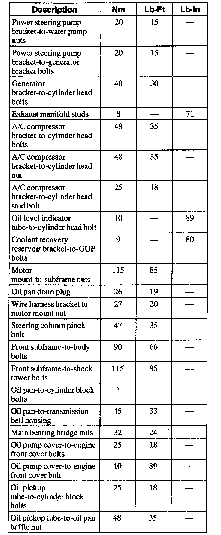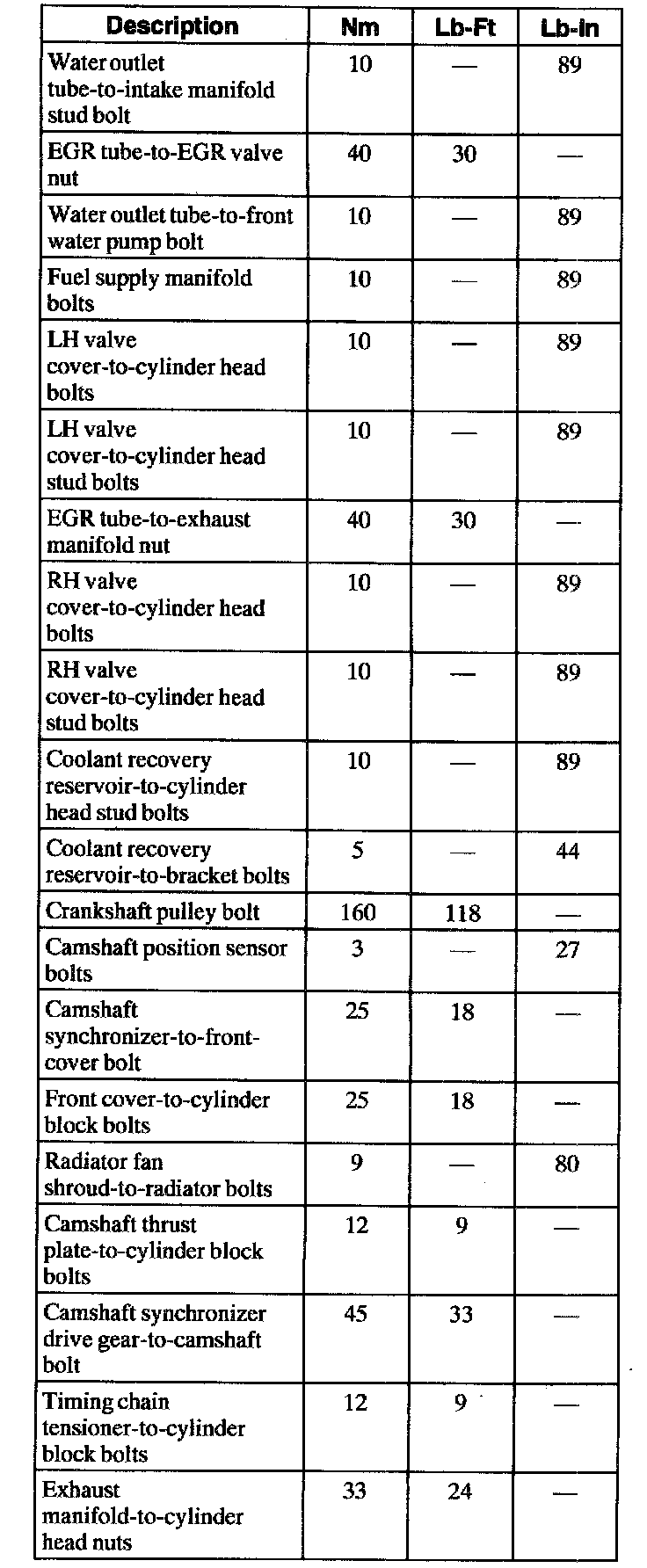 Torque Specifications