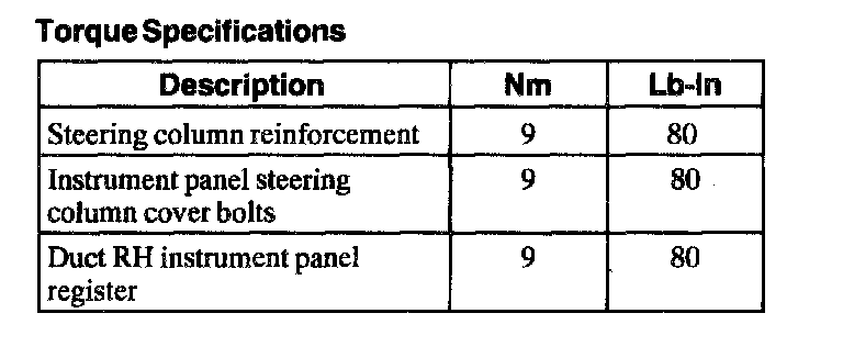 Torque Specifications: