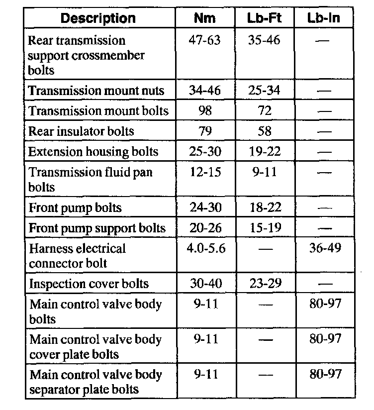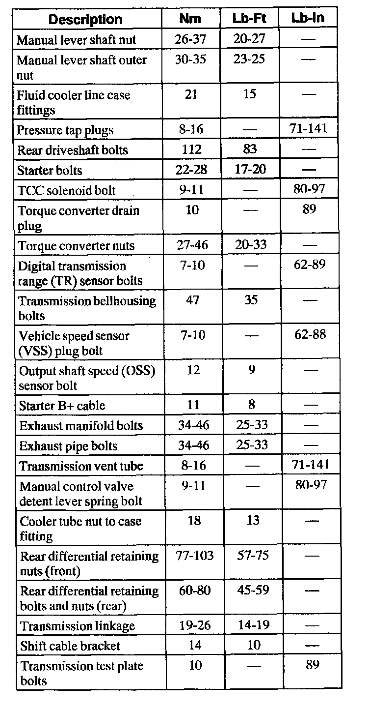 Torque Specifications
