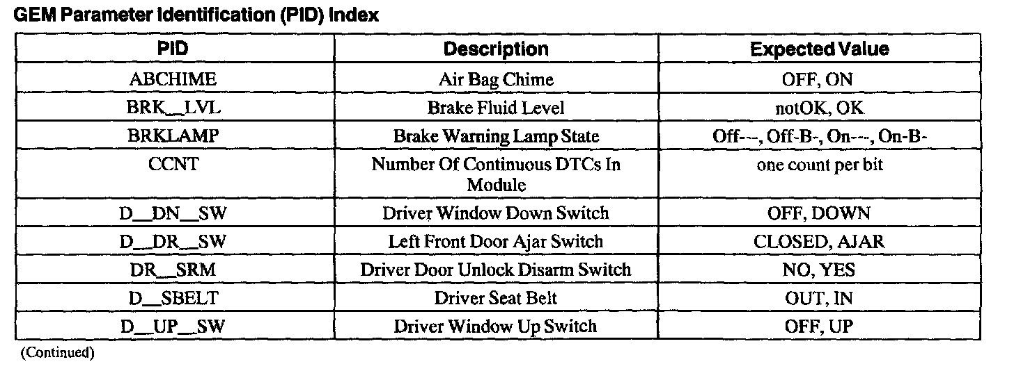 GEM Parameter Identification (PID) Index: