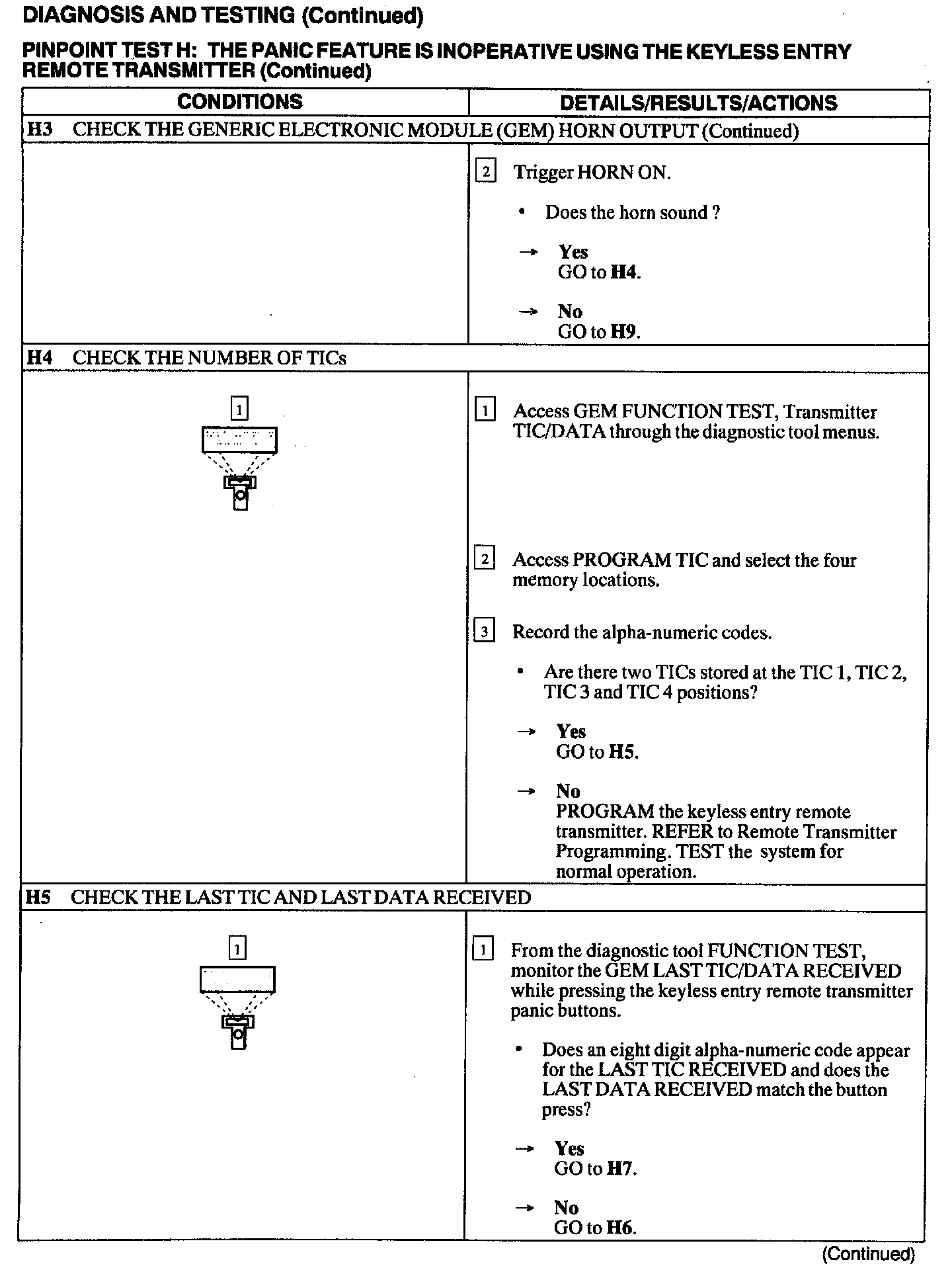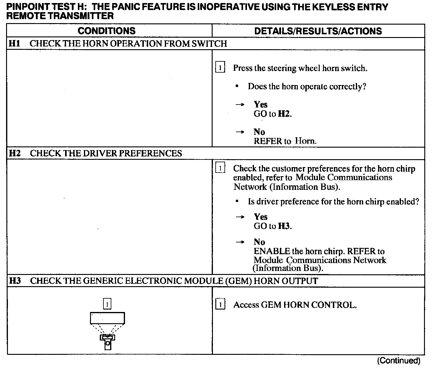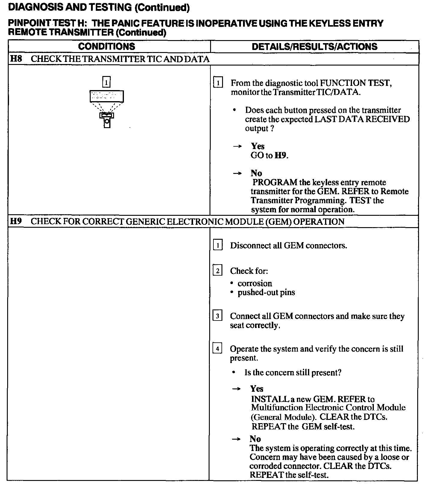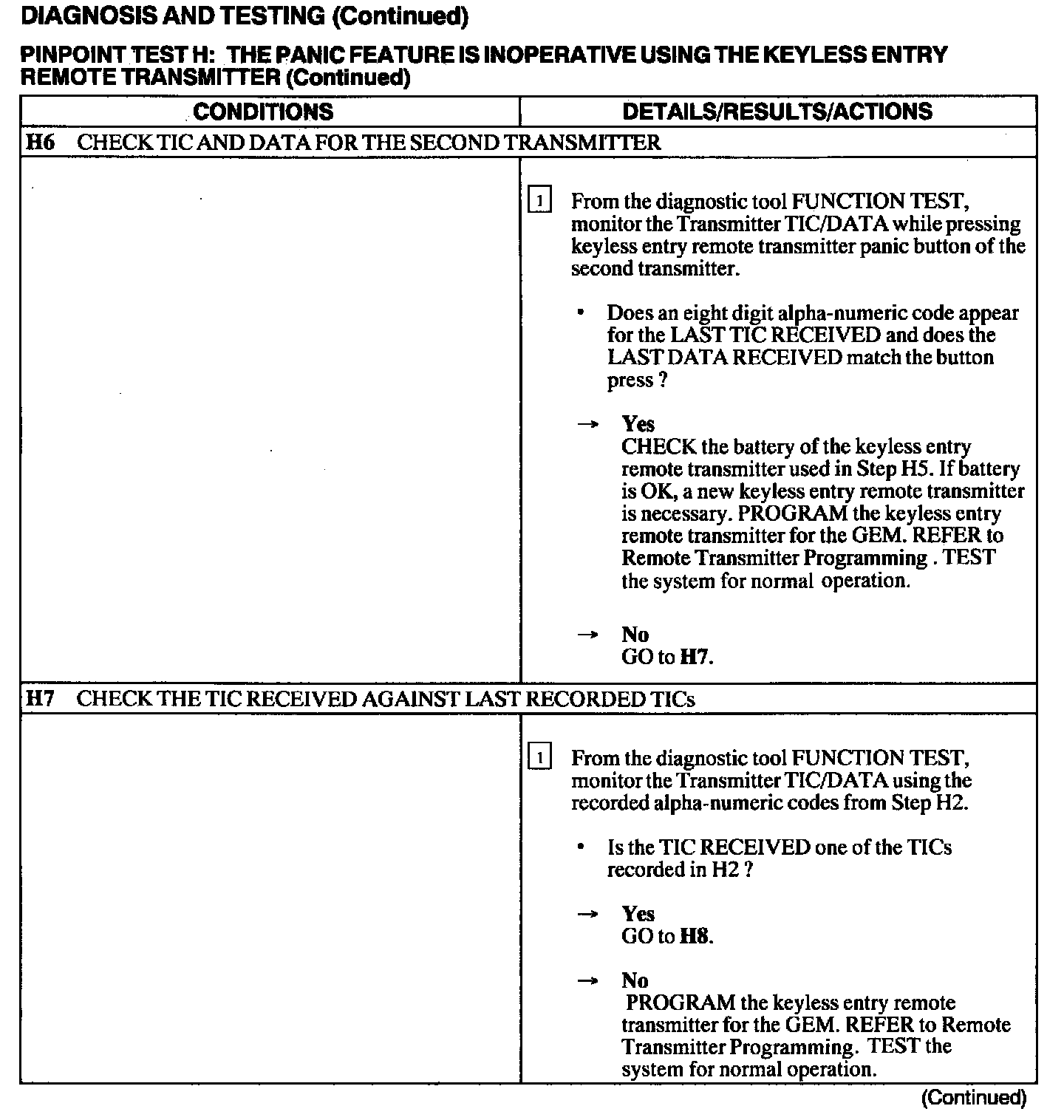 Test H: Panic Feature Is Inoperative Using The Keyless Entry Remote Transmitter