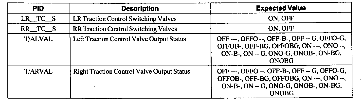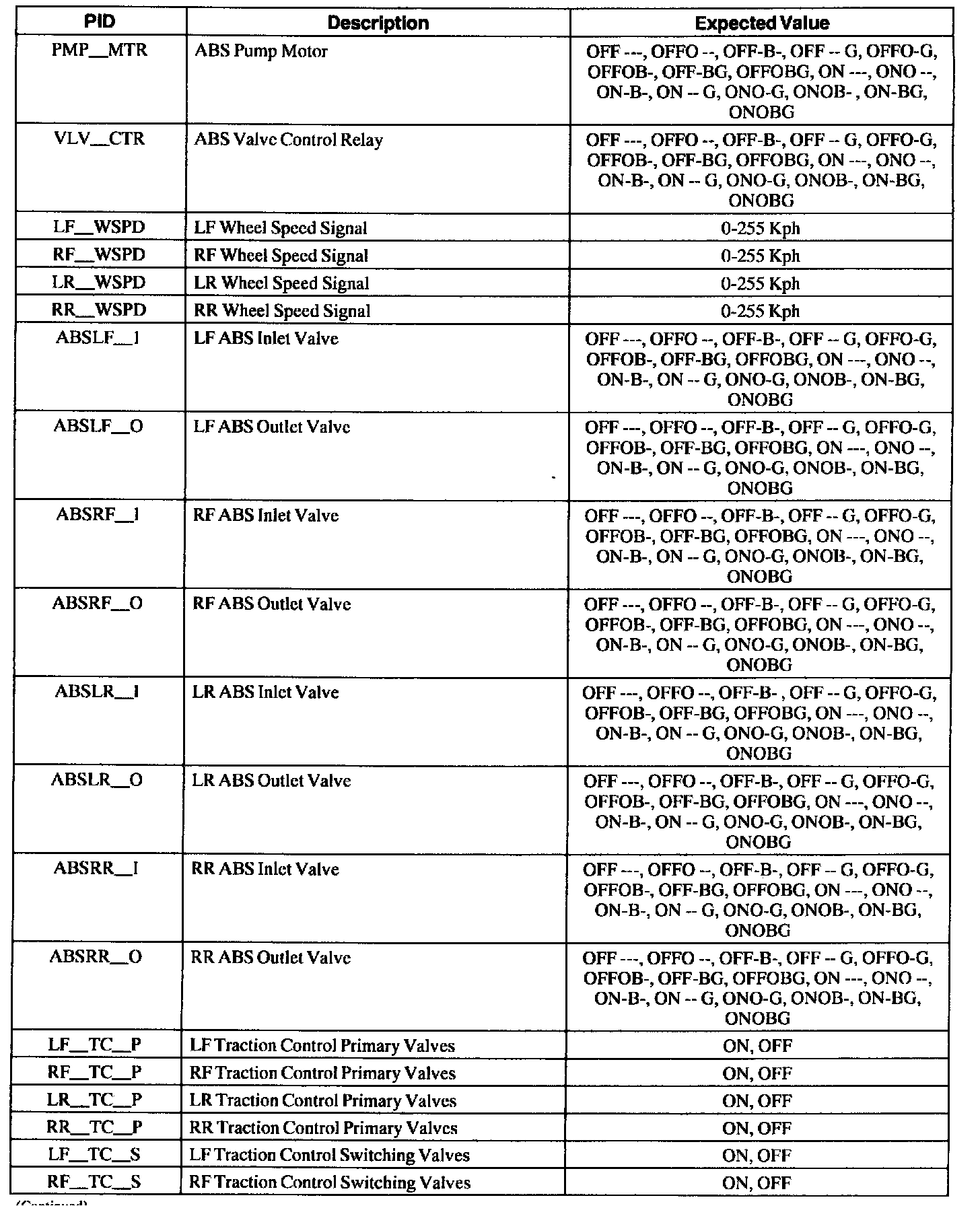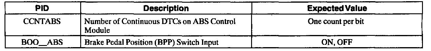 ABS Control Module Parameter Identification (PID) Index