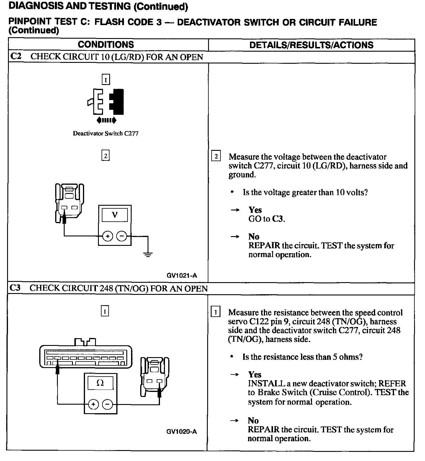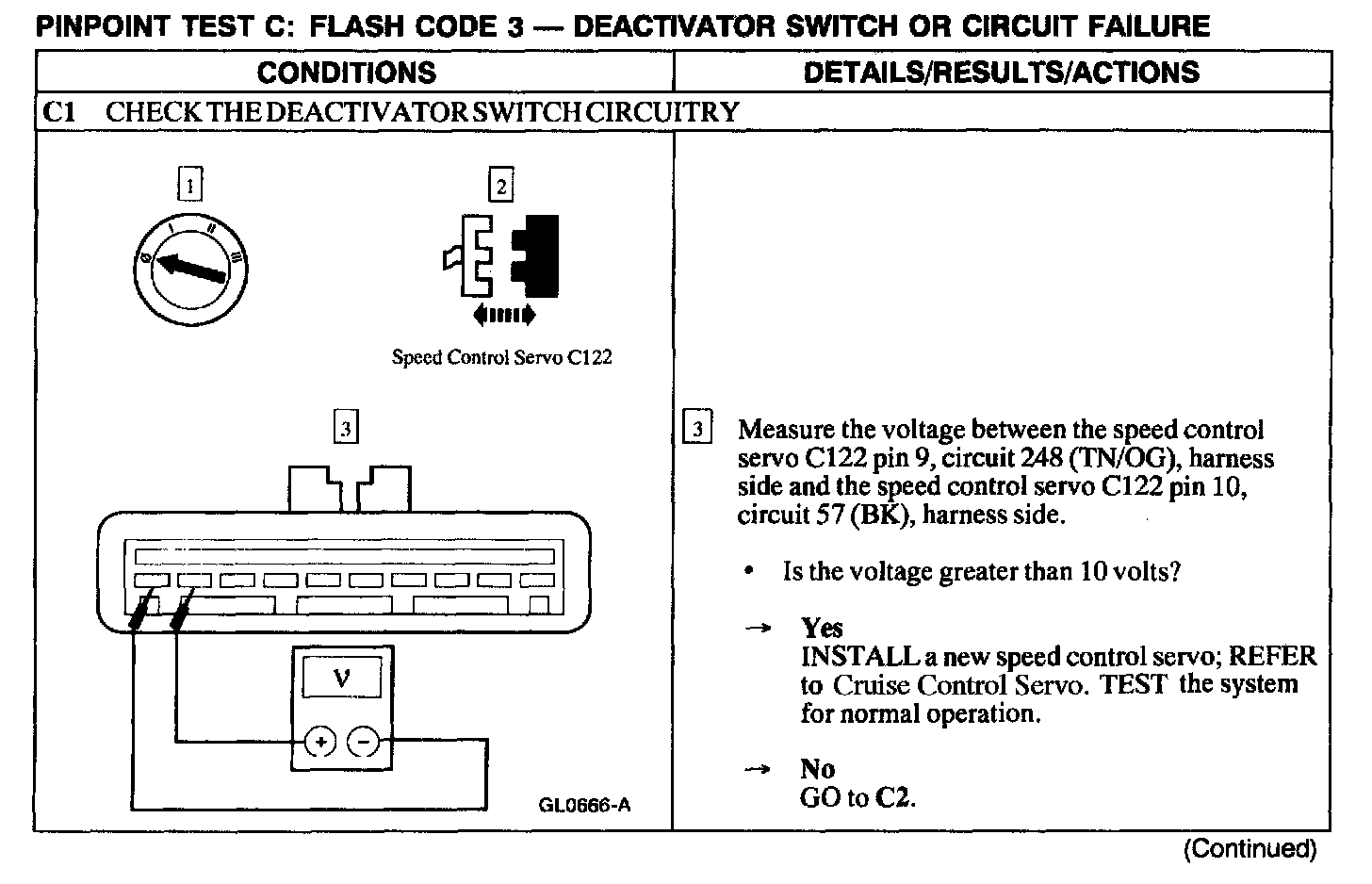 Test C: Flash Code 3 - Deactivator Switch Or Circuit Failure