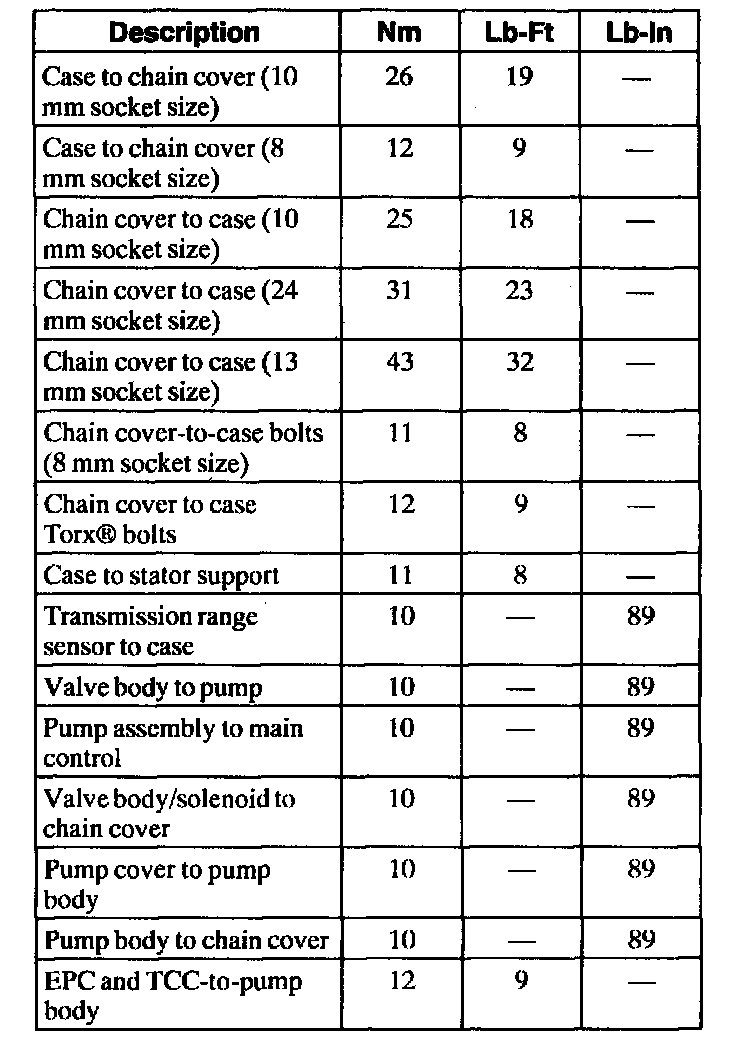 Torque Specifications
