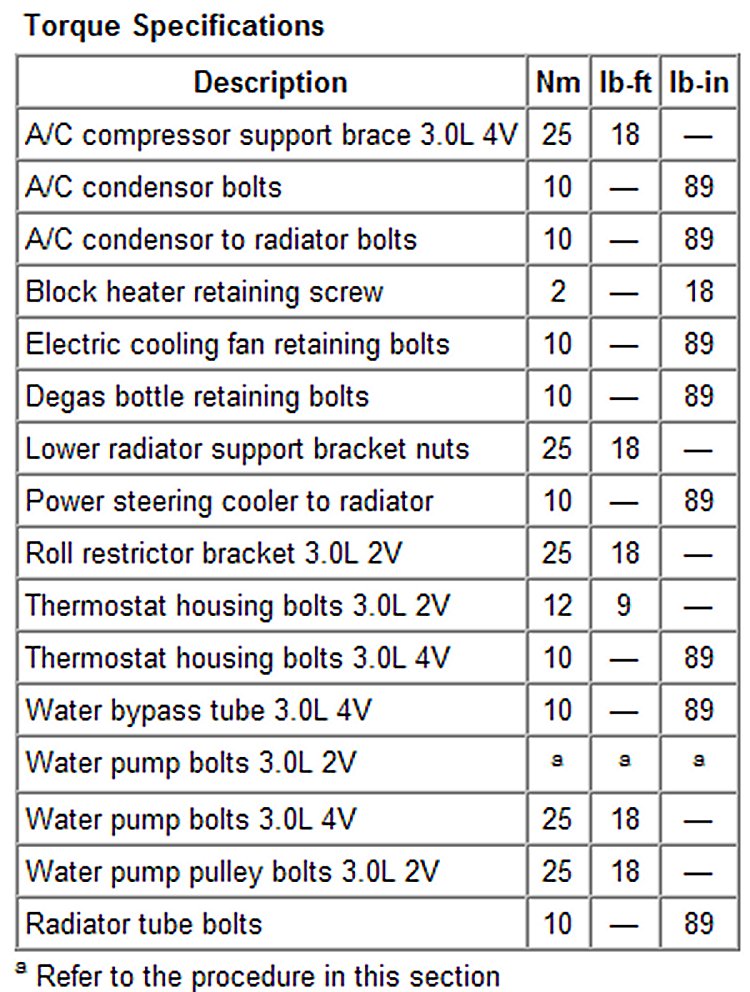 Torque Specifications: