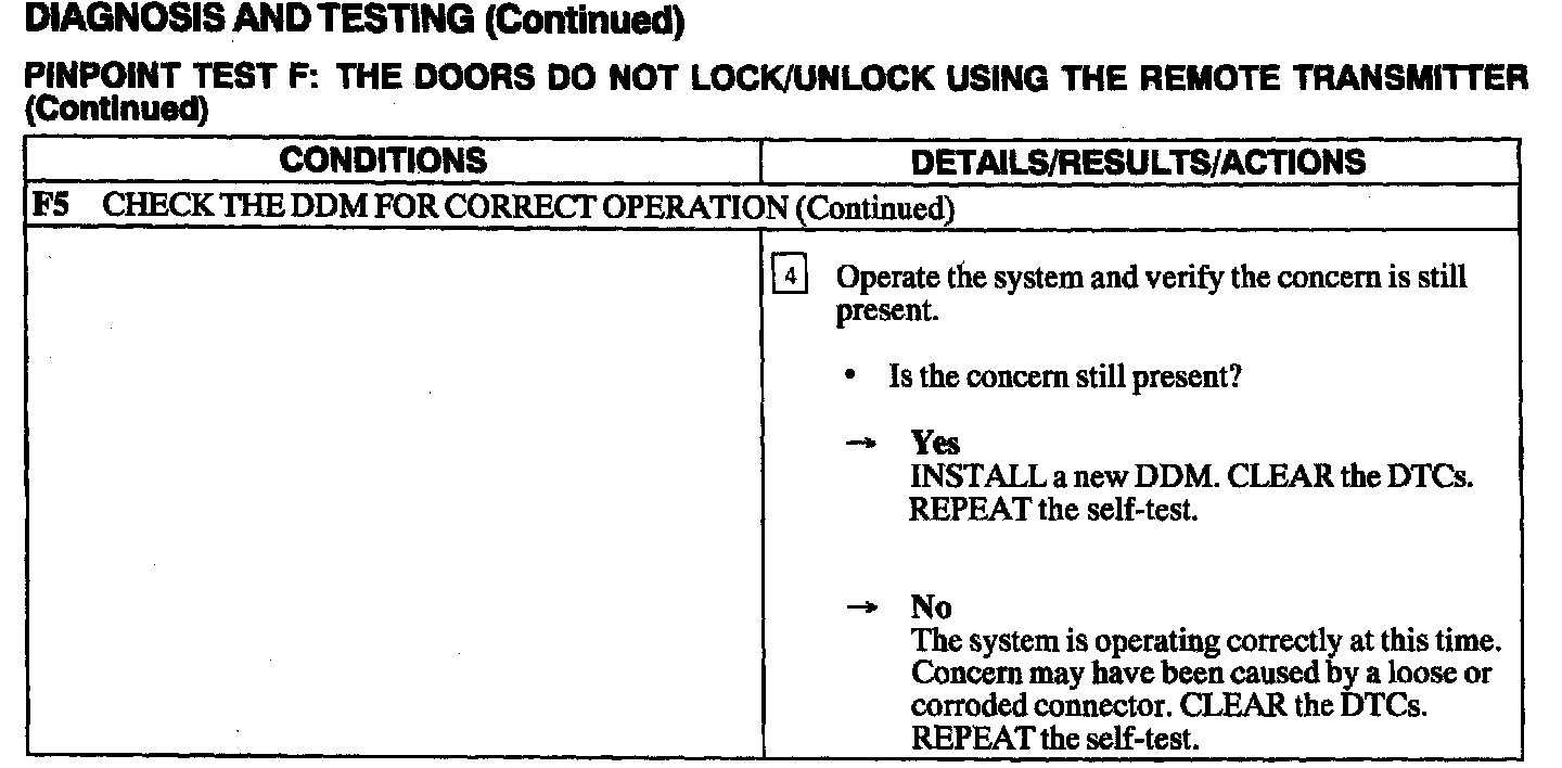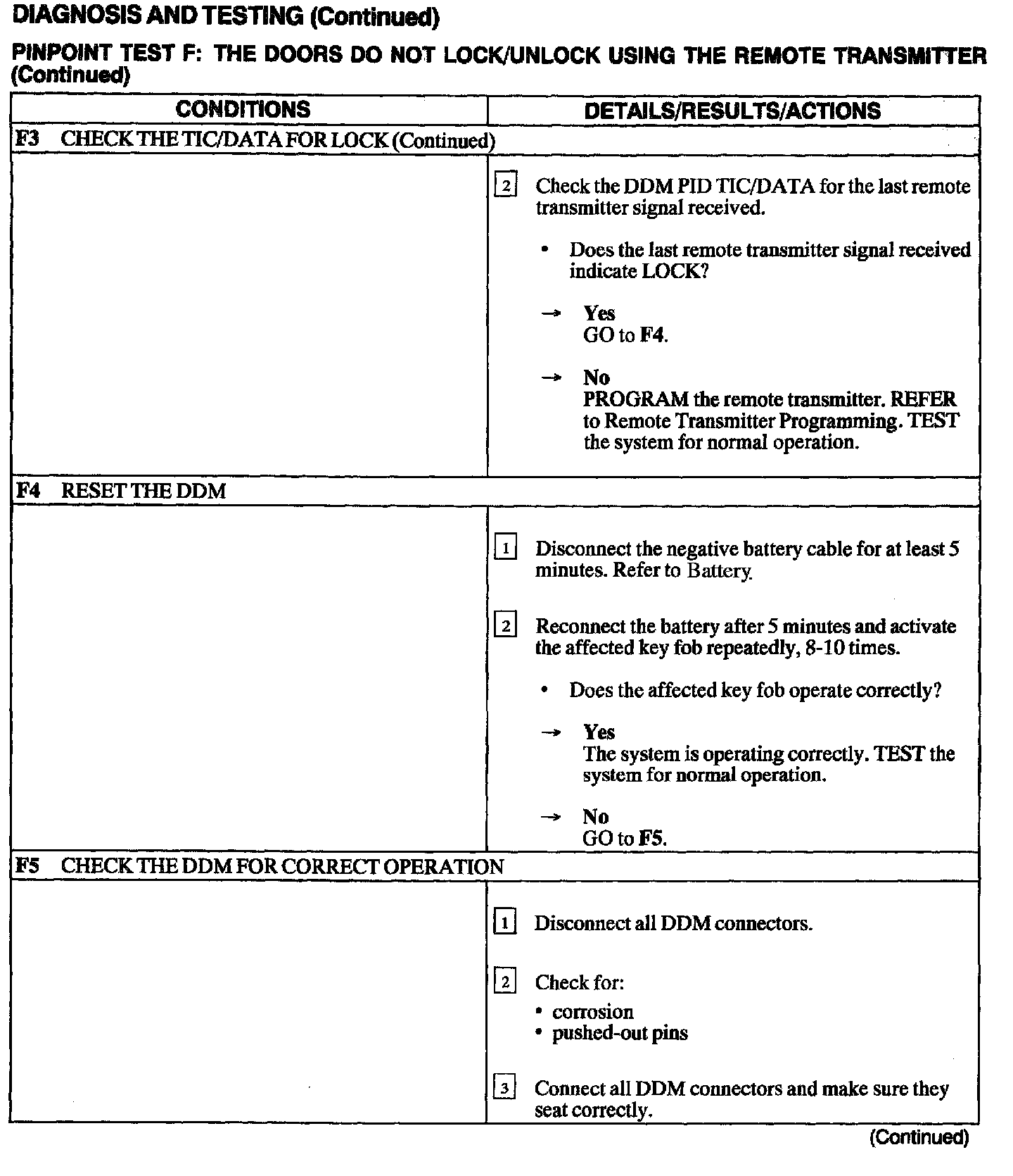 Test F: Doors Do Not Lock/Unlock Using the Remote Transmitter