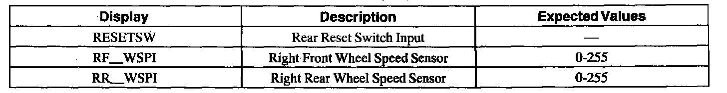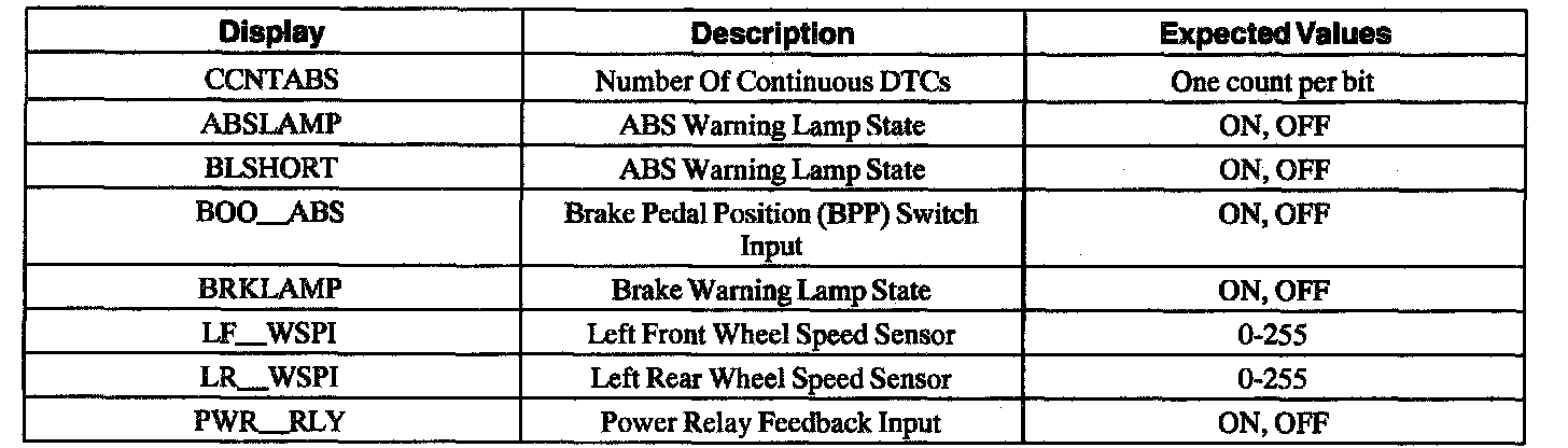 Anti-Lock Broke Control Module Parameter Identification (PID) Index