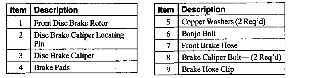 Front Disc Brake System Components