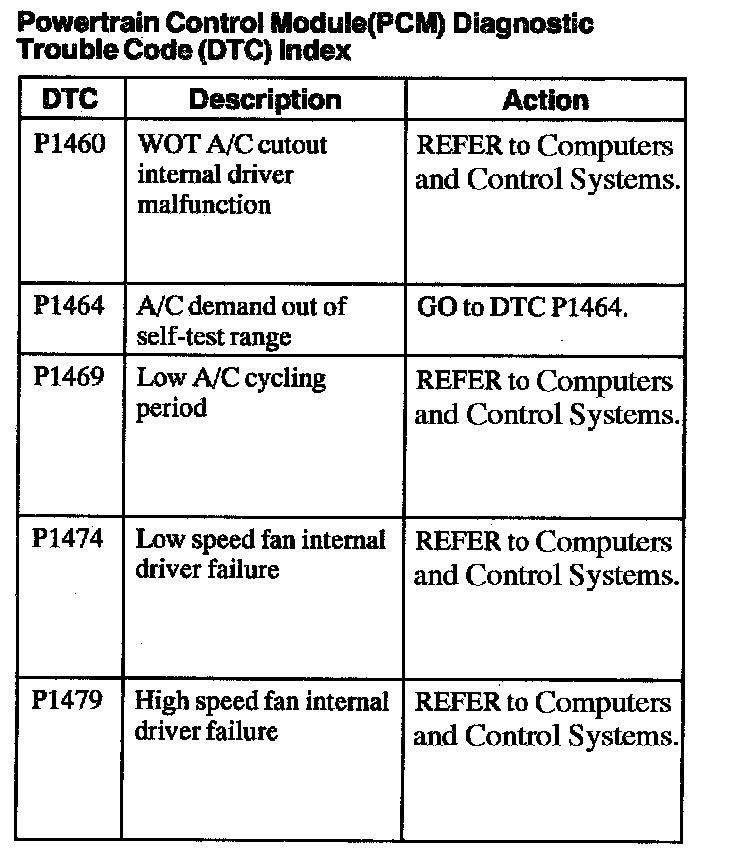 Powertrain Control Module Diagnostic Trouble Code (DTC) Index