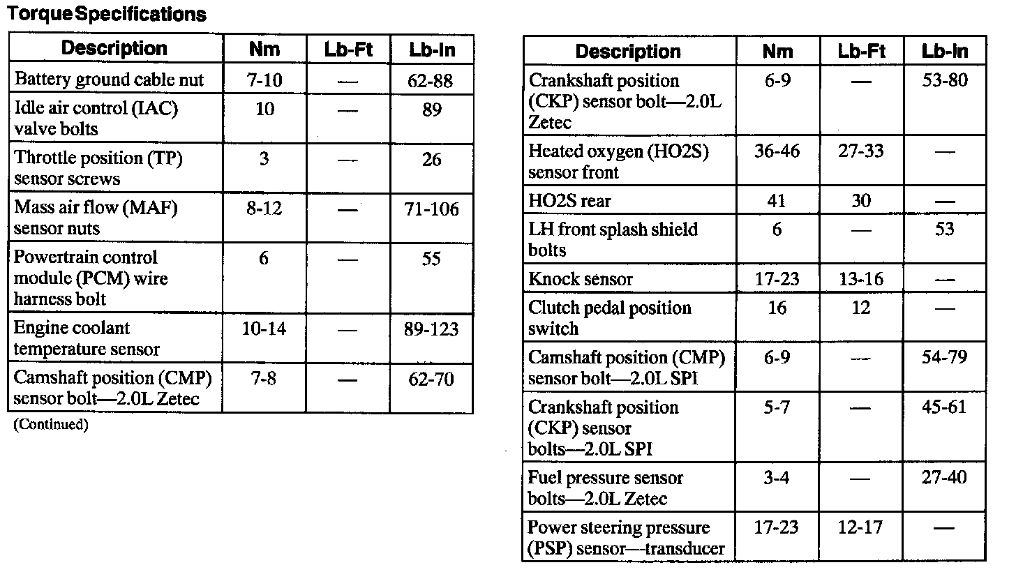 Torque Specifications:
