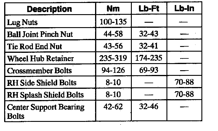 Torque Specifications