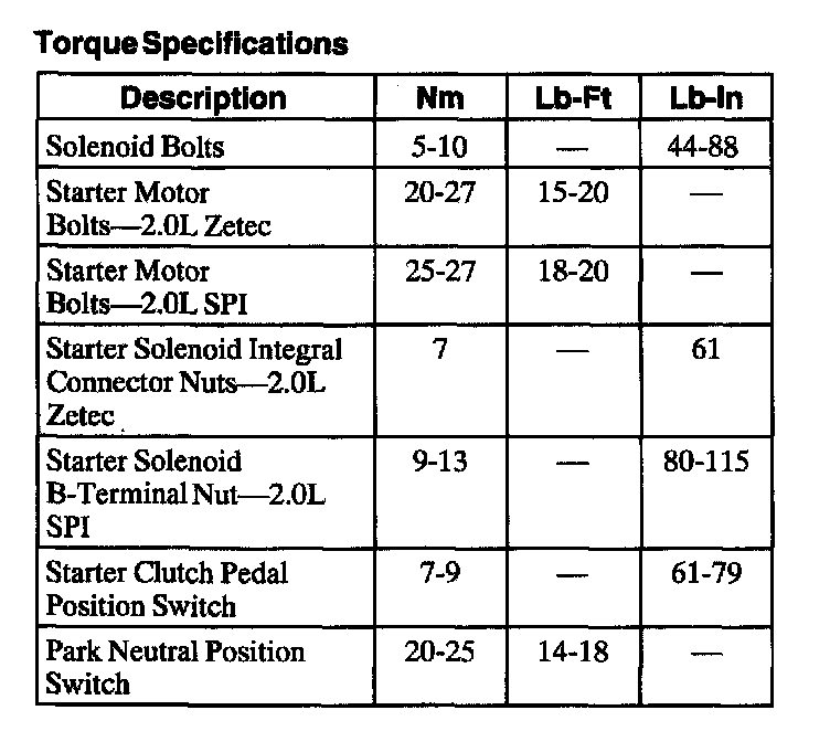 Torque Specifications: