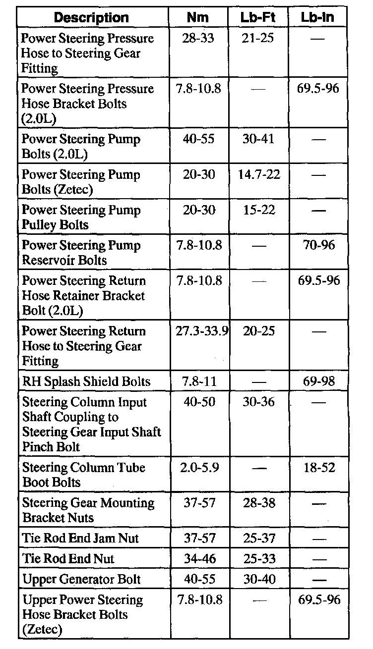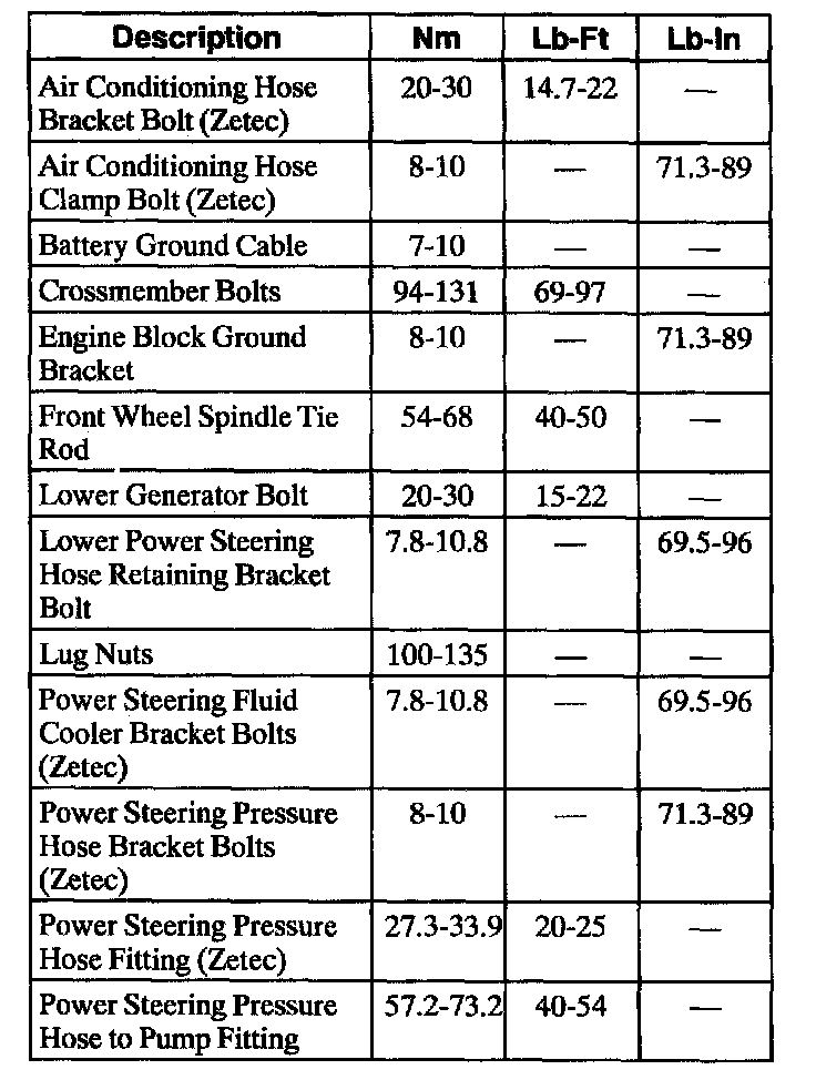Torque Specifications