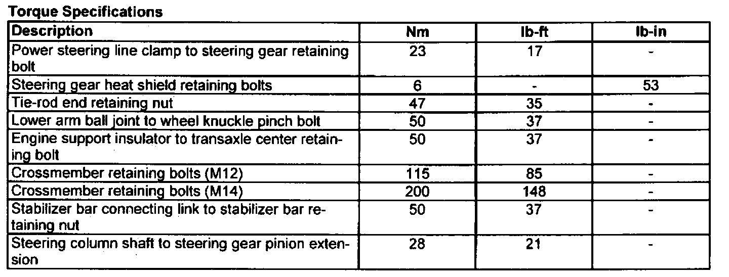 Torque Specifications: