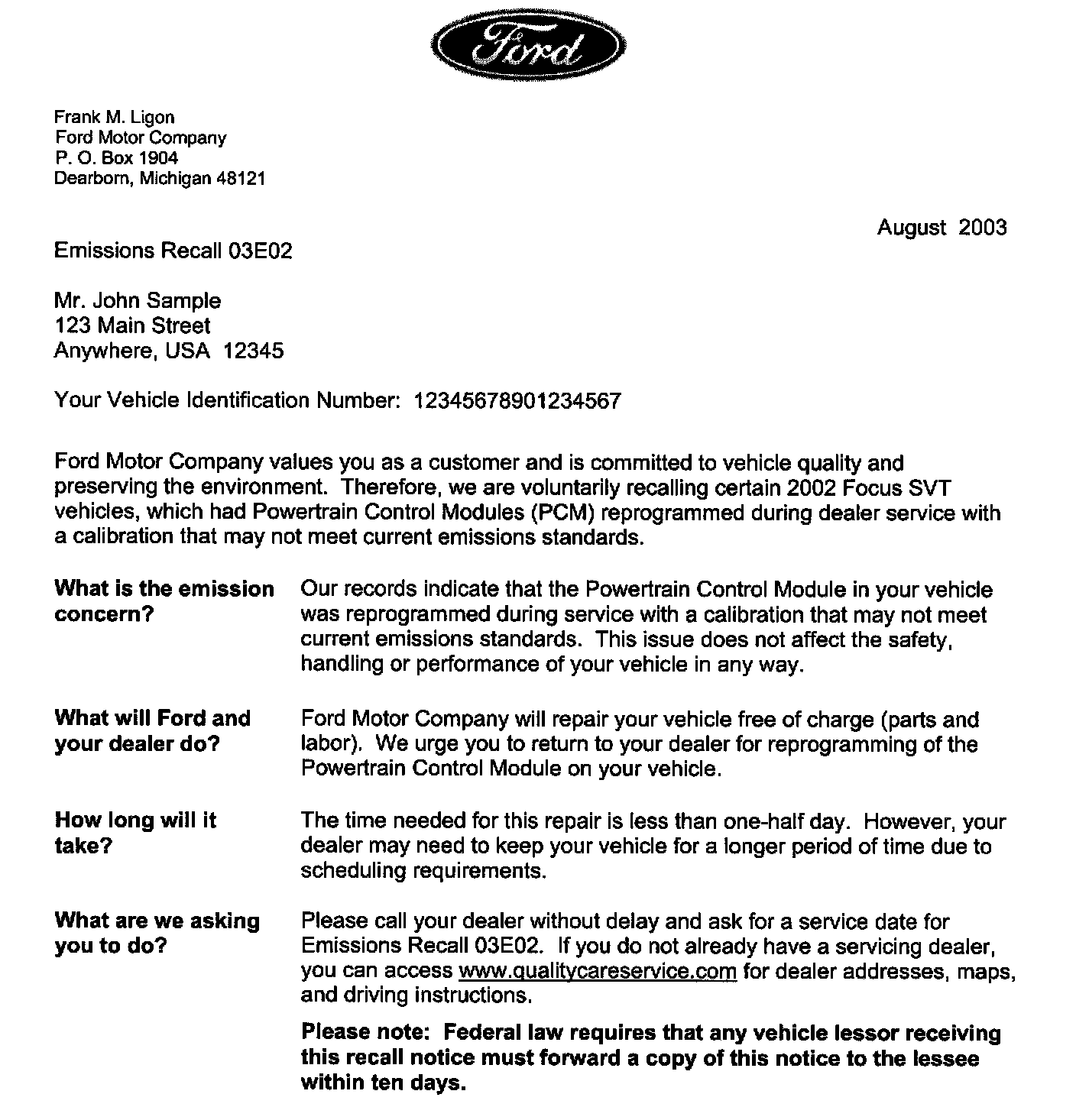 Recall - Incorrect PCM Reprogramming