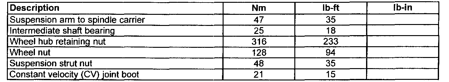 Torque Specifications