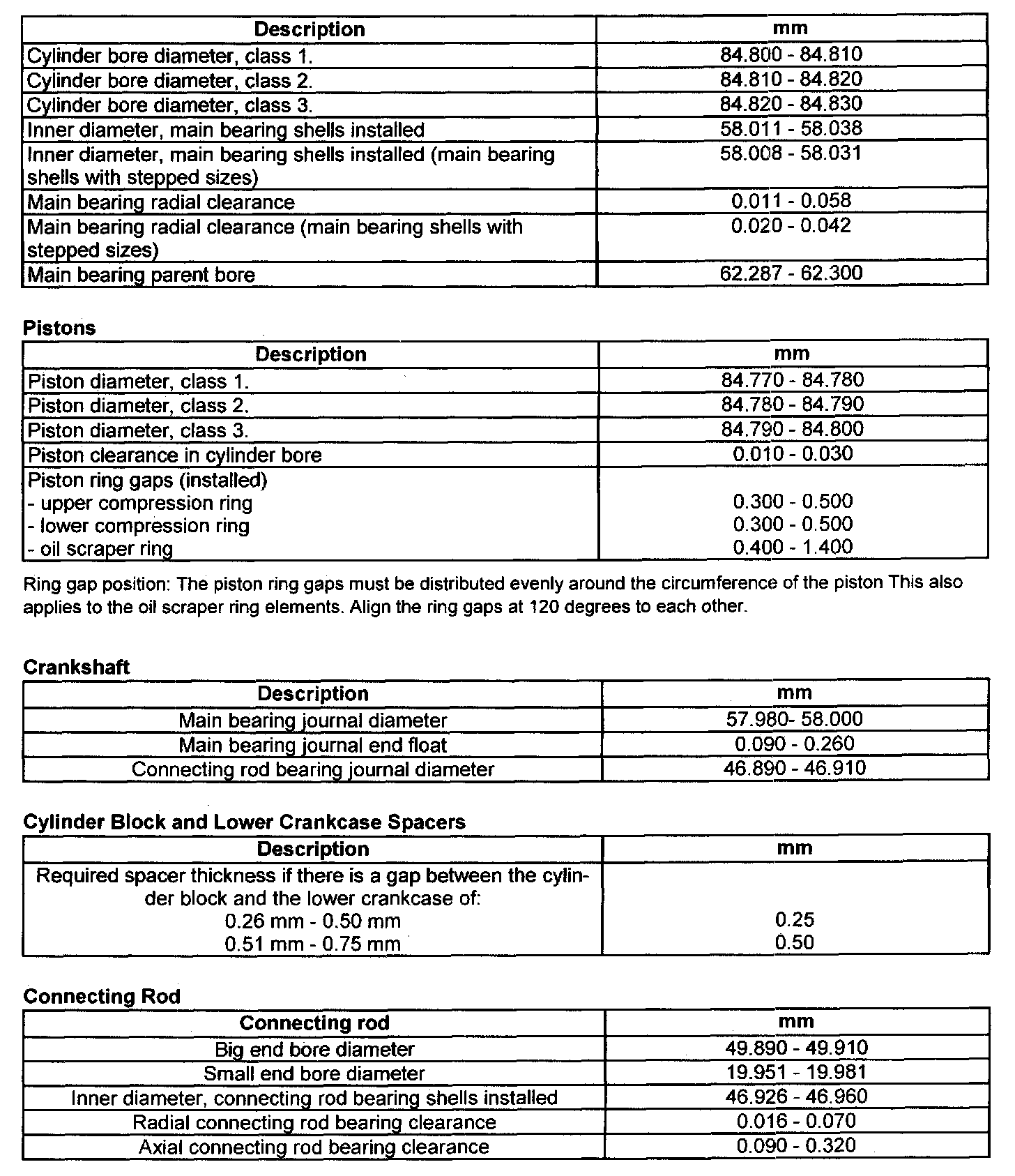 Cylinder Block, Pistons, Crankshaft & Connecting Rod Dimensions: