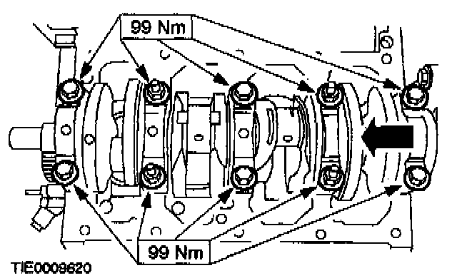 6. NOTE: Use main bearing shells of size "B" or "C" (refer to the previous step).